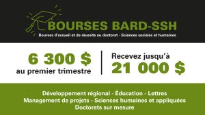 S’amorçant au trimestre d’Automne 2025, les bourses d’accueil et de réussite –Sciences sociales et humaine (BARD-SSH) ont pour objectif d’appuyer les personnes qui poursuivent des études en sciences humaines et sociales dans leur passage entre le 2e et le 3e cycle et dans l’atteinte de leur plan de formation doctorale. Il s’agit d’un programme de bourses universelles, en ce sens qu’il n’est pas lié à un concours. Il s’adresse à l’ensemble des personnes nouvellement inscrites dans l’un des programmes ciblés, et ce, sans égard au statut de leur citoyenneté.
